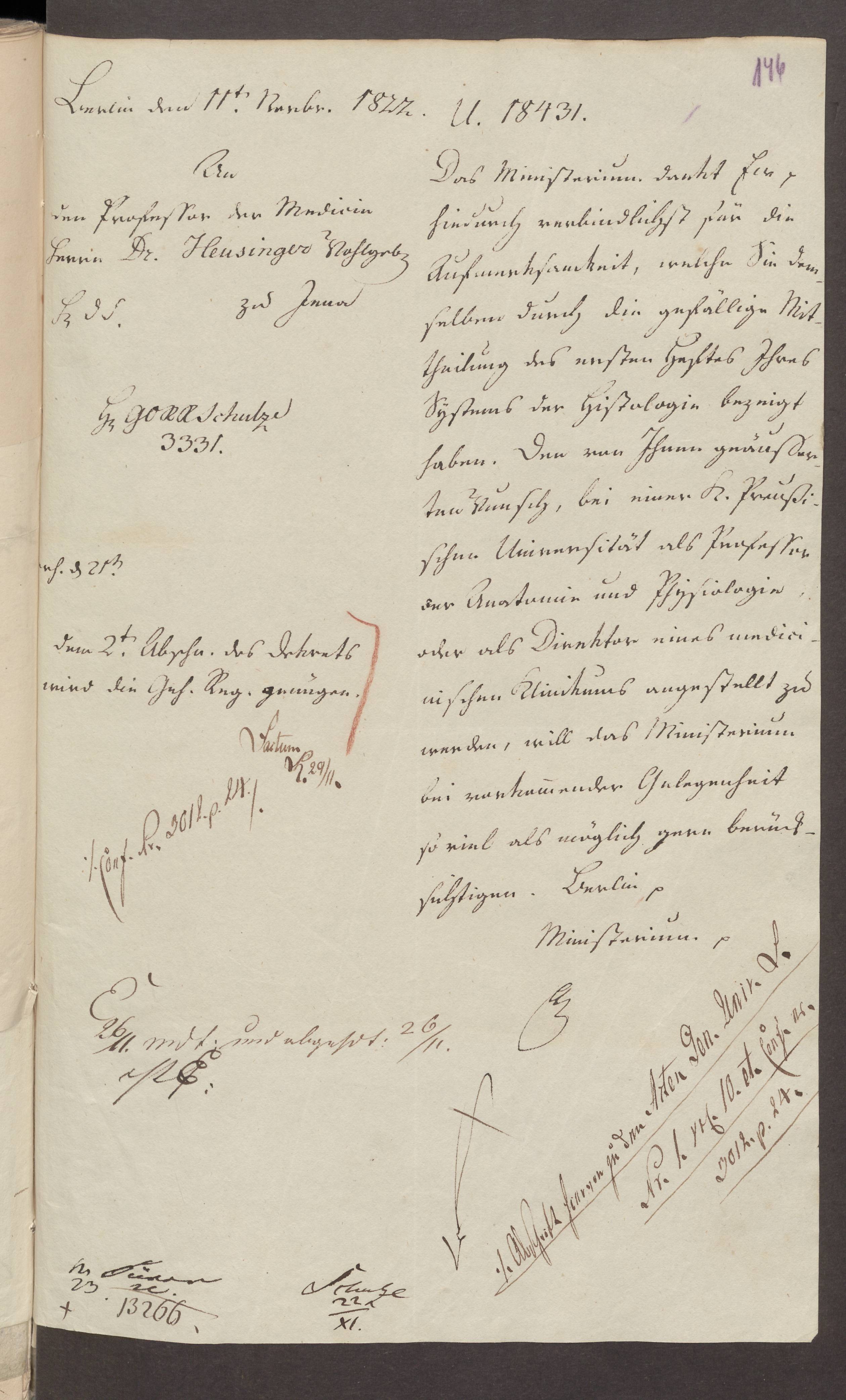 11. November 1822. Kultusministerium an Heusinger (Konzept).