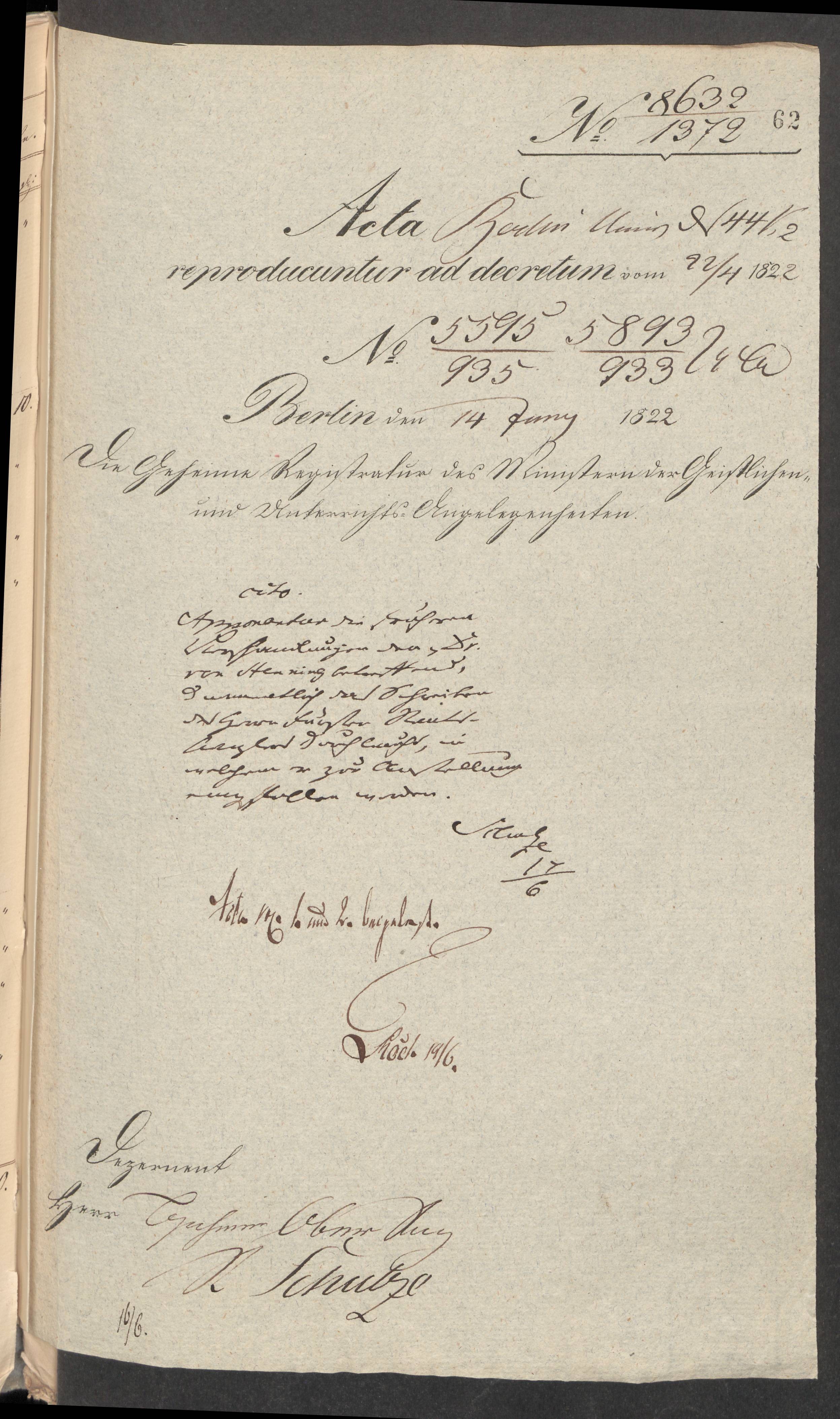 GStA_I_HA_Rep76_Vf_LitH_Nr_10_062r.jpg. Wirkungsgeschichte von Goethes Werk „Zur Farbenlehre“ in Berlin 1810-1832. Stiftung Preußischer Kulturbesitz; Geheimes Staatsarchiv (Signatur: GStA PK, I. HA Rep. 76, Vf Lit. H Nr. 10, Bl. 62r).