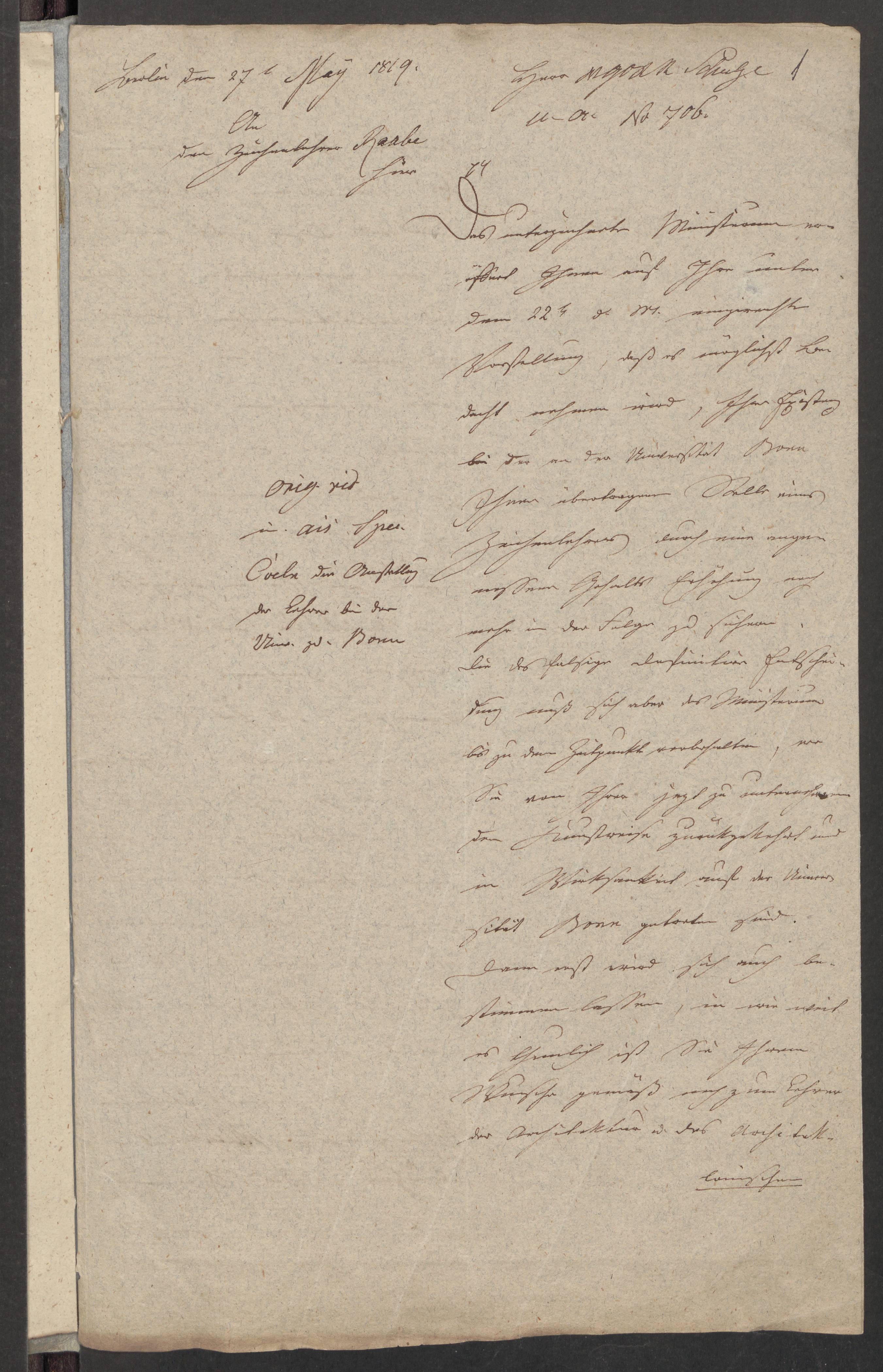 27. Mai 1819. Kultusministerium an Raabe (Konzept, Abschrift).