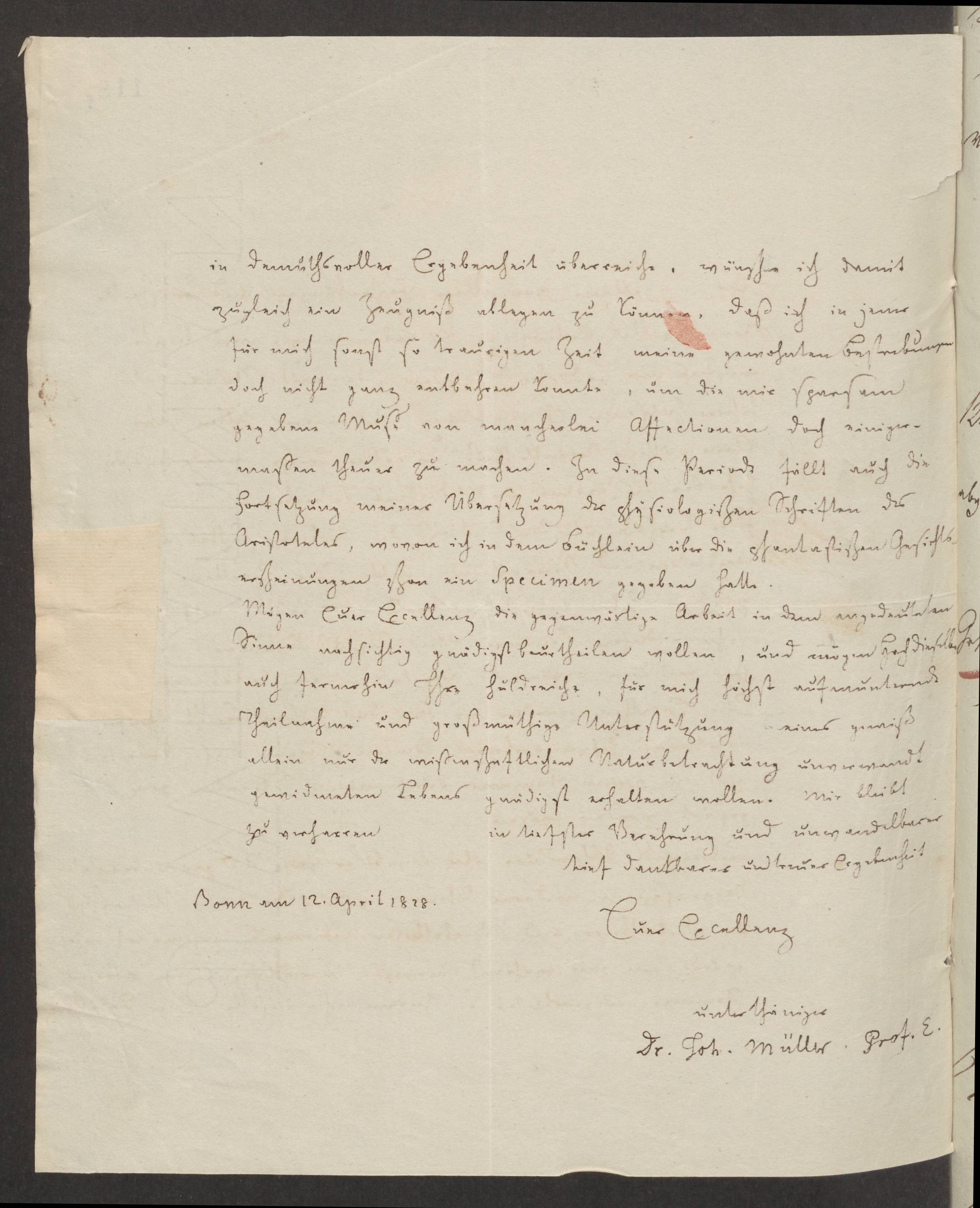 TextGrid Repository (2022). Goethes Farbenlehre in Berlin. Repositorium. 12. April 1828. Johannes Müller an Altenstein. Images. GStA_I_HA_Rep76_Vf_LitM_Nr_6_118v.jpg. Wirkungsgeschichte von Goethes Werk „Zur Farbenlehre“ in Berlin 1810-1832. Stiftung Preußischer Kulturbesitz; Geheimes Staatsarchiv (Signatur: GStA PK, I. HA Rep. 76, Vf Lit. M Nr. 6, Bl. 117r-118v). https://hdl.handle.net/21.T11991/0000-001C-1FB7-2