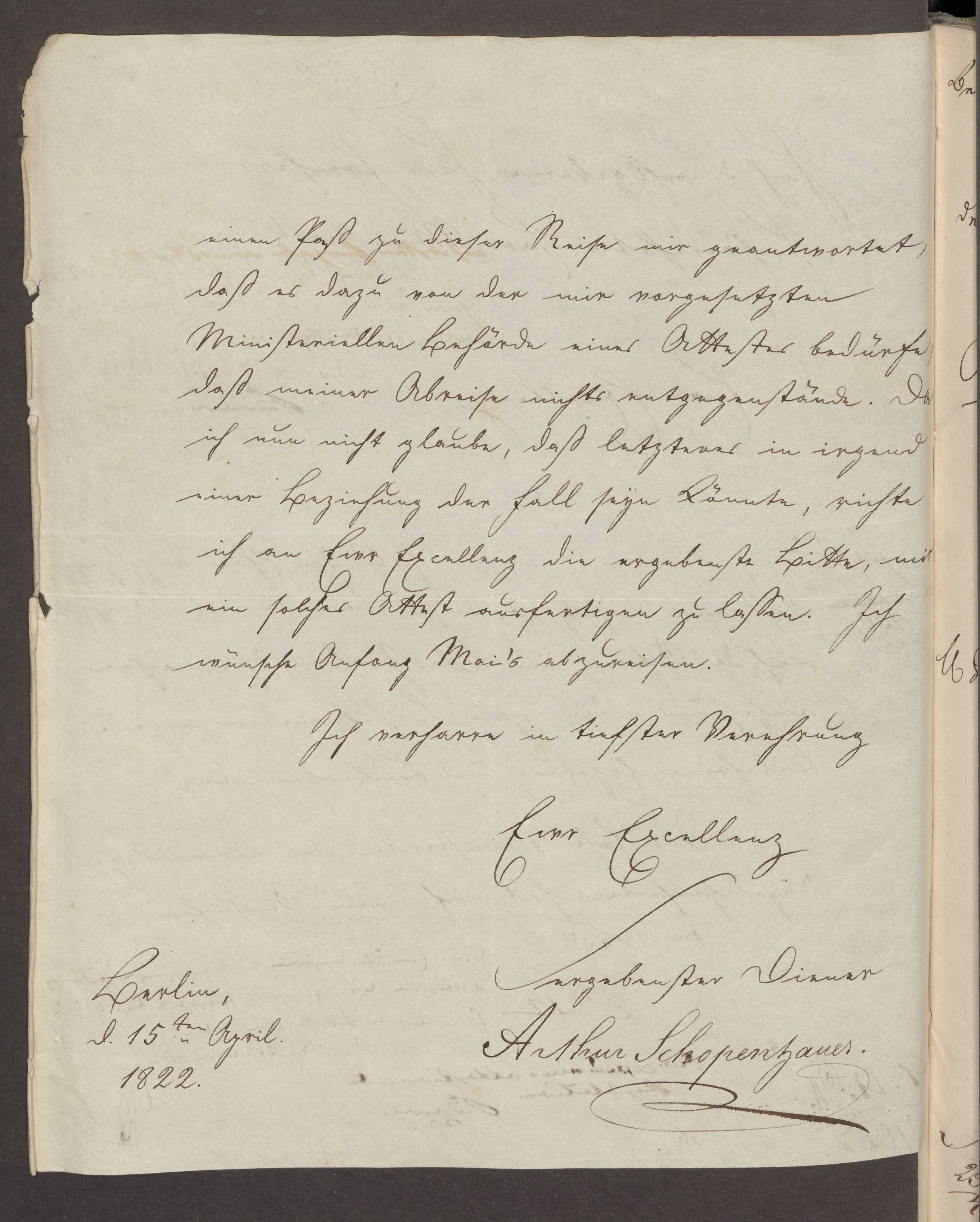15. April 1822. Schopenhauer an Altenstein.