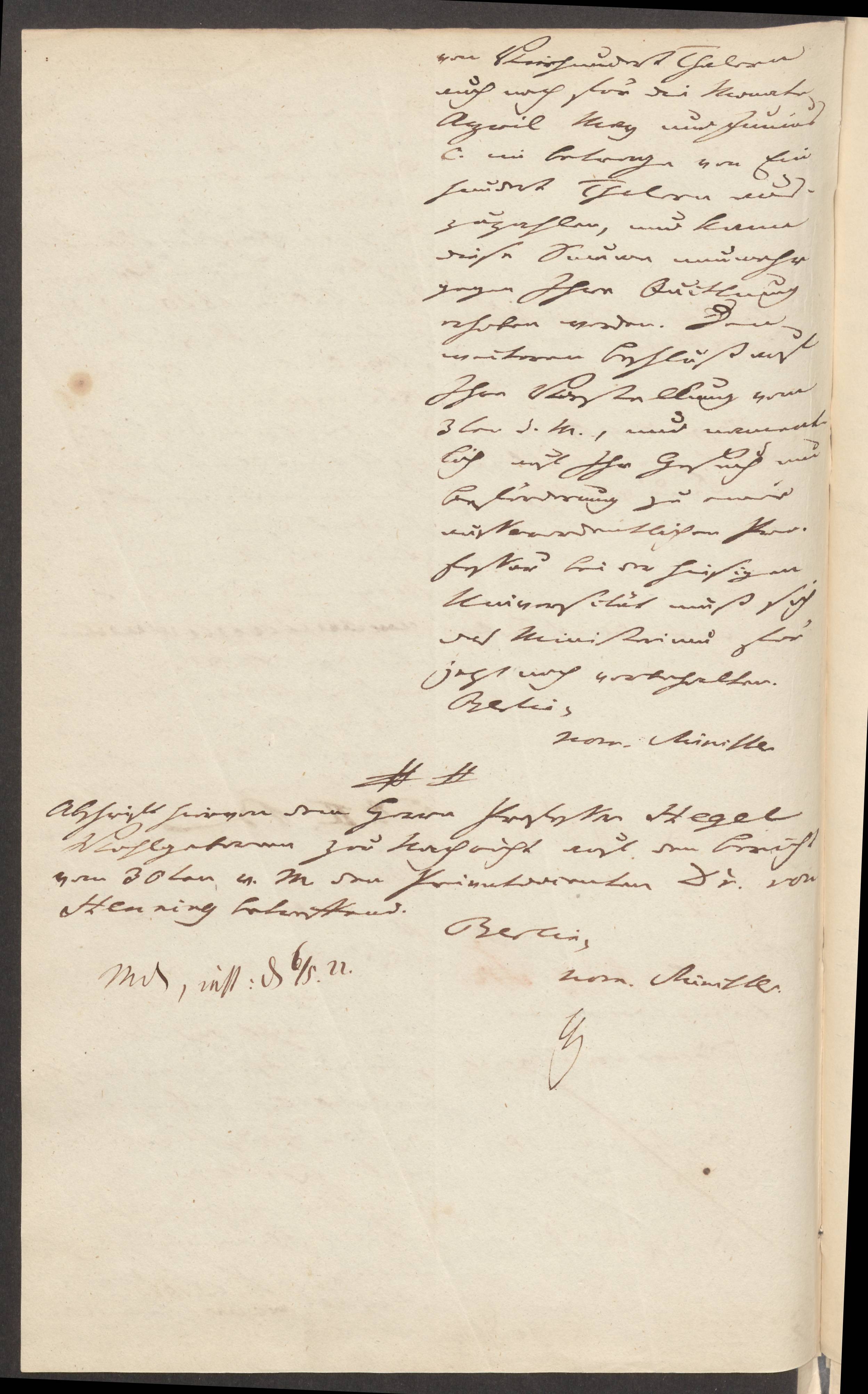 22. April 1822. Kultusministerium an von Henning (Konzept).