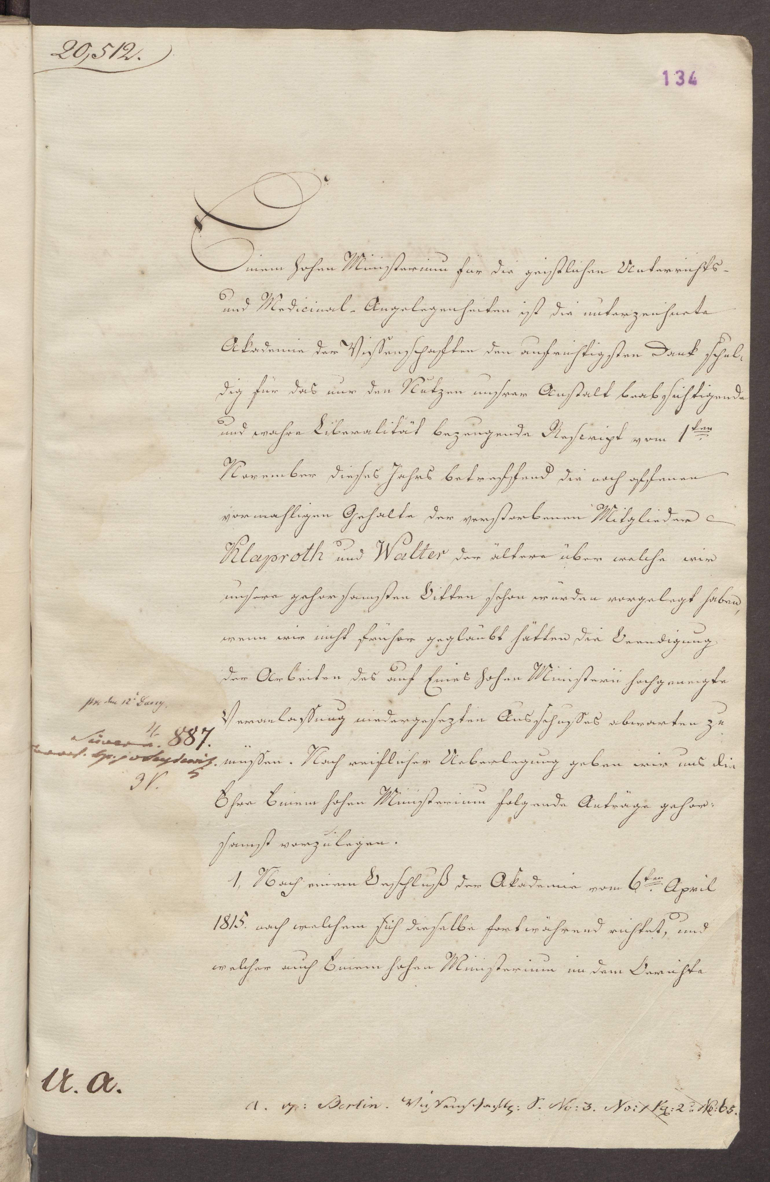 7. Dezember 1819. Berliner Akademie der Wissenschaften an Kultusministerium (Ausfertigung; Auszug).