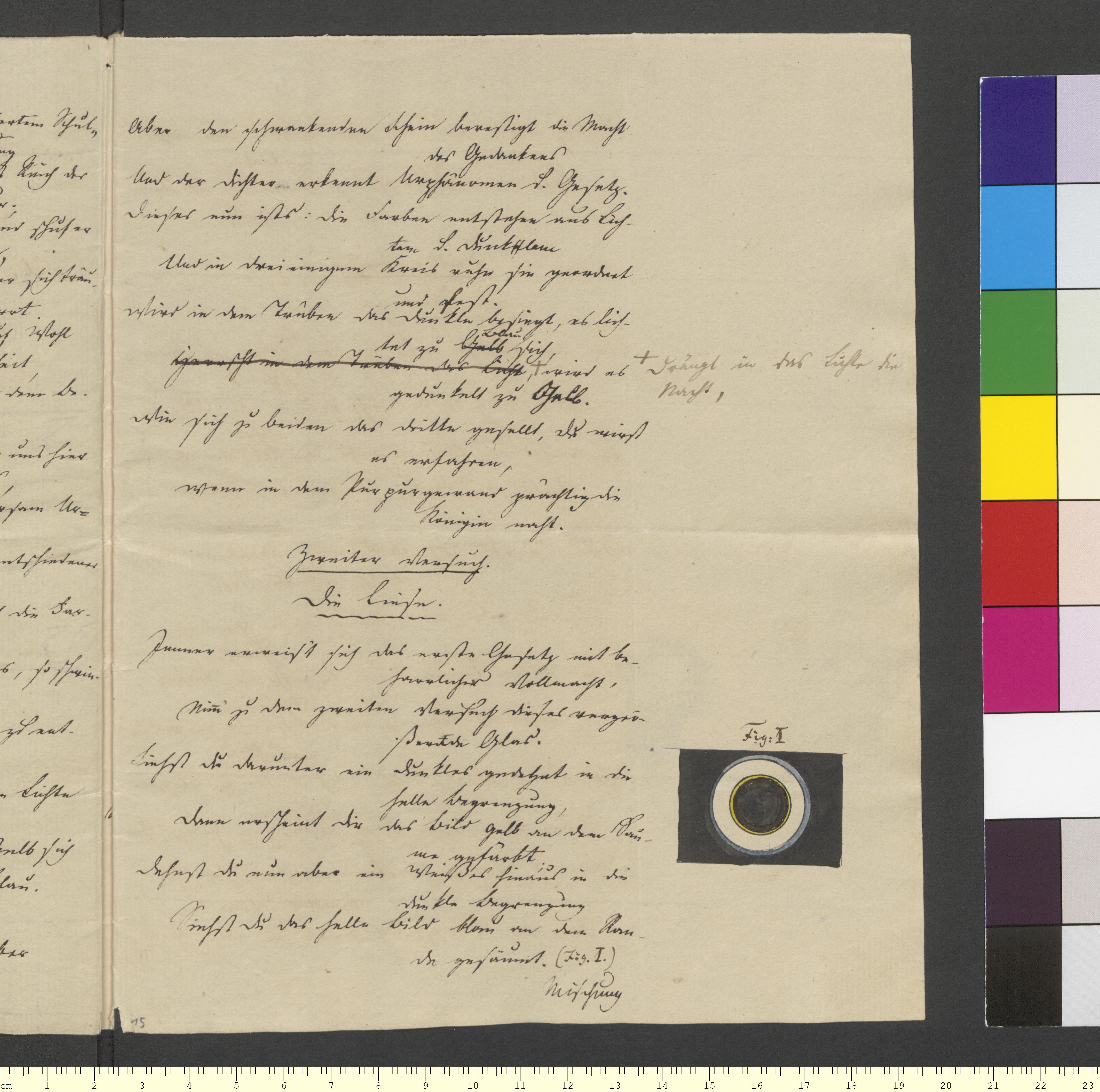 GSA_28_320_015r.jpg. Wirkungsgeschichte von Goethes Werk „Zur Farbenlehre“ in Berlin 1810-1832. Klassik Stiftung Weimar; Goethe- und Schiller-Archiv (Signatur: GSA 28/103 Bl. 292r-293r. GSA 28/320 St. 9, Bl. 13r-23v (Beilage)).