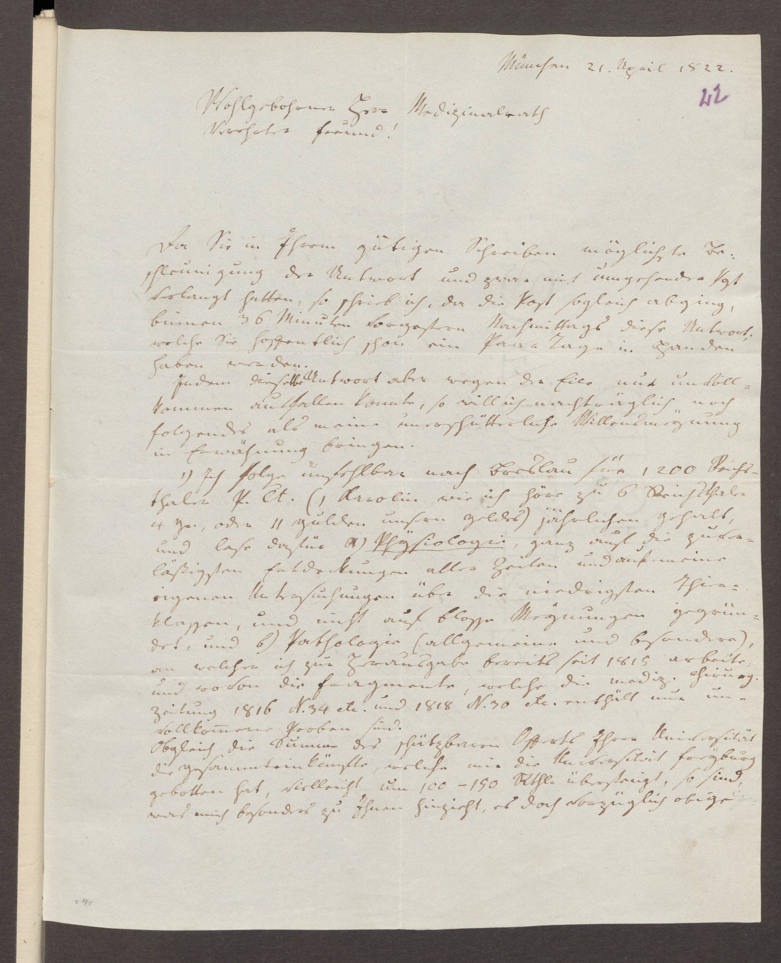 21. April 1822. Gruithuisen an Otto.