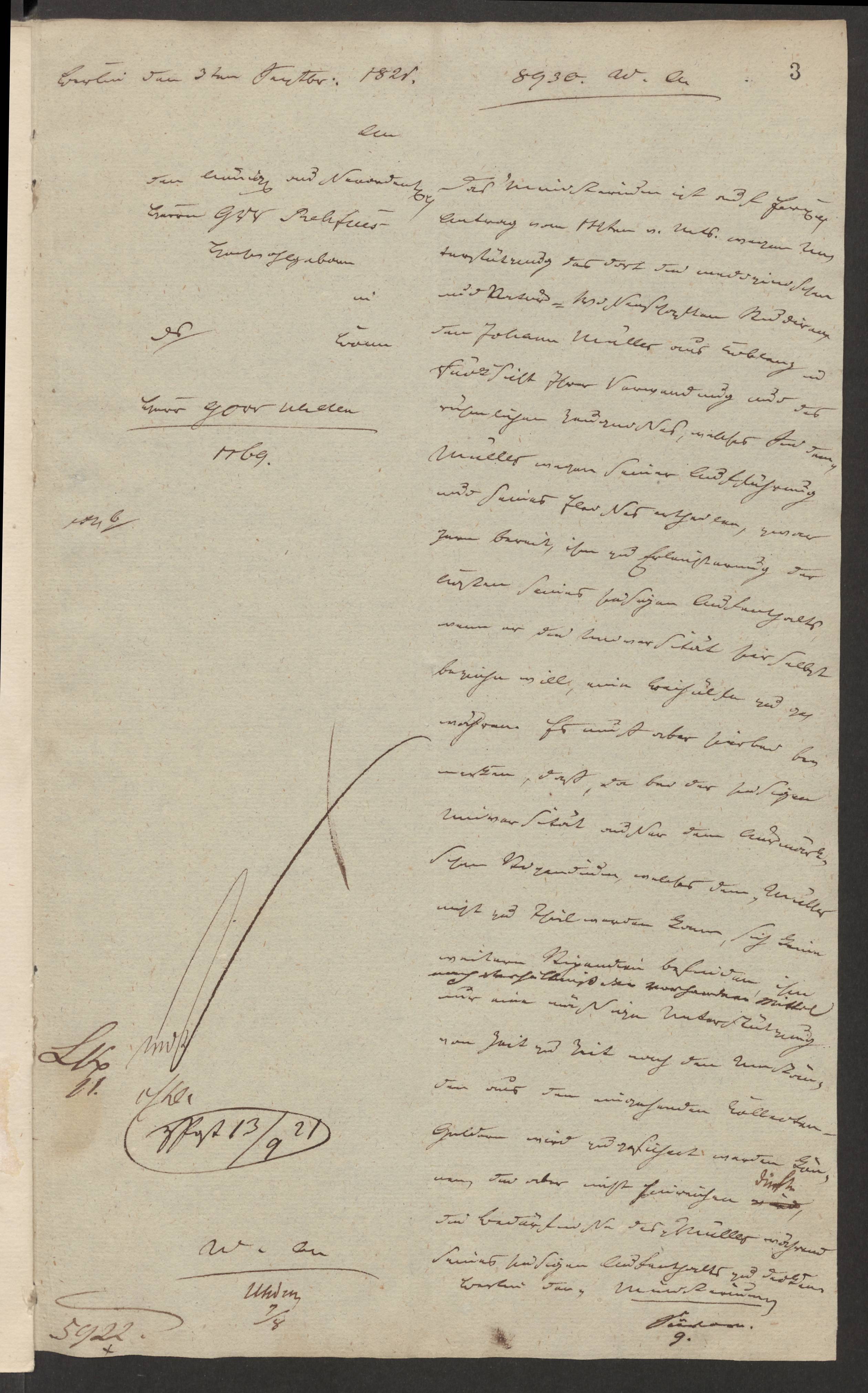 3. September 1821. Kultusministerium an Rehfues (Konzept).